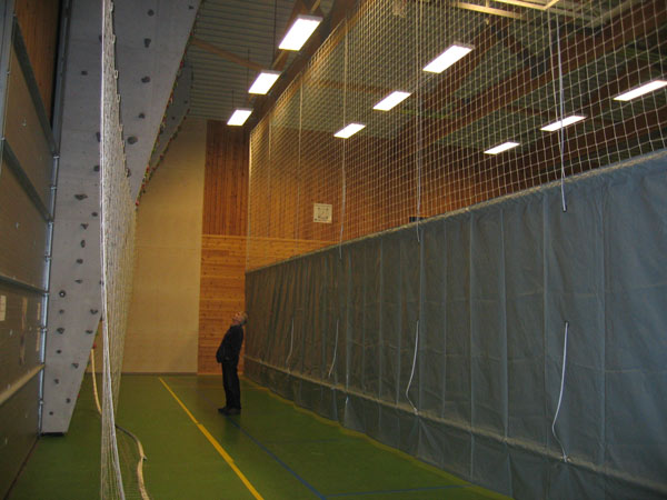 som deler hallen i 1/3 nærmest klatreveggen.